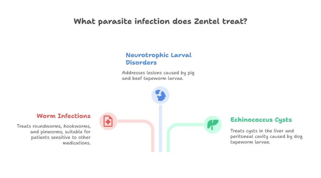 In order to eliminate worms or parasites from the digestive tract and other tissues, Zentel Tablet is utilized.