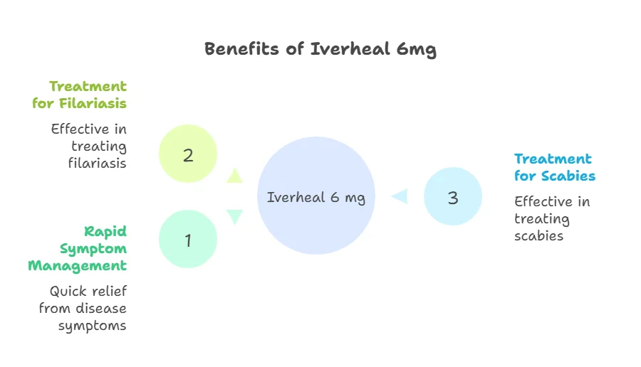Iverheal 6mg is used to treat parasitic infections such as scabies and filariasis.